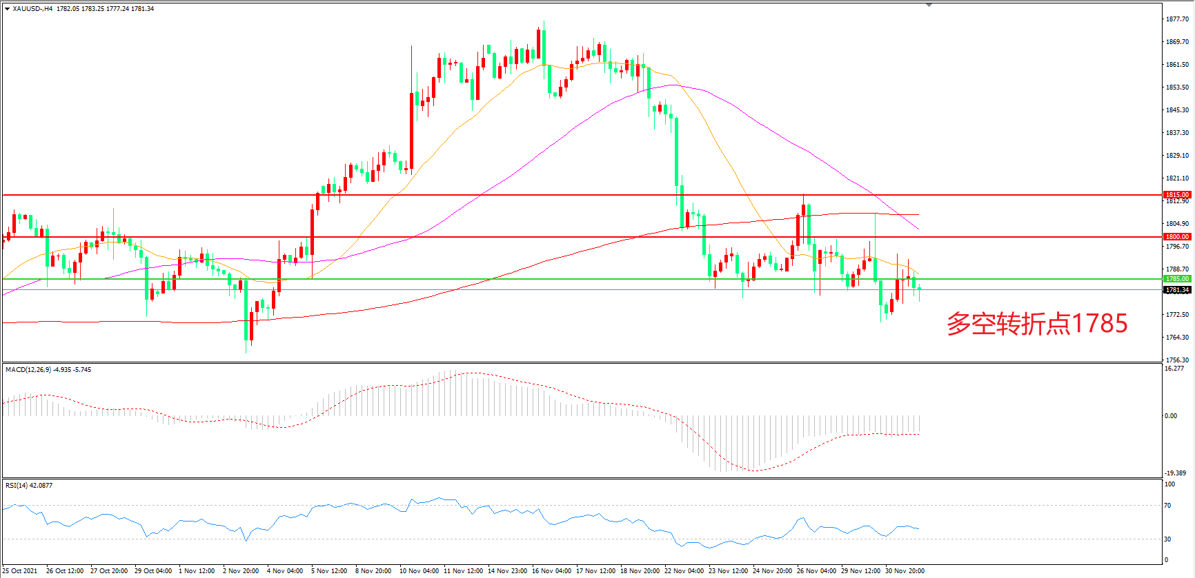 周三(12月1日),美国方面公布有“小非农”之称的ADP就业数据,53.4万人的数据表现差强人意,现货金价维持窄幅震荡,收报1781.25美元/盎司。鉴于美联储主席鲍威尔发布的证词,市场对美联储政策的预期已经发生了转变,如果非农数据出现更好表现,加息预期将使金价再度承压。