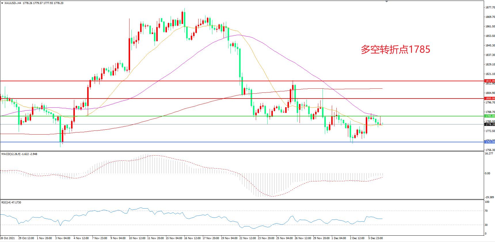 周一(12月6日),目前投资者都在等待美国CPI数据出炉,美元指数的强势表现对金价形成压制,现货黄金延续低位震荡,收报1783.92美元/盎司。随着相关研究分析进一步展开,疫情未来走向将变得更加清晰。如果有关奥密克戎的数据证实其严重程度较轻,黄金可能再度承压下行。