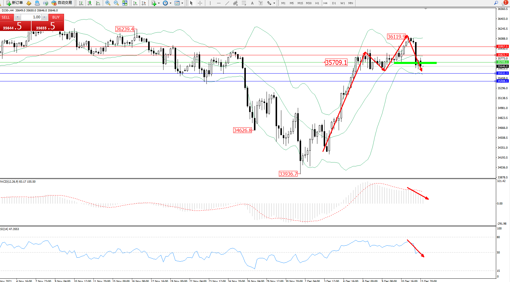 技术点评:多头动力延续布林带指标中上轨促进持续震荡上扬,高位抵达36119附近遇阻震荡回撤,短期或维持在布林带指标通道中下股轨区间持续震荡下行,布林带指标呈张口走势后开始收口整理,MACD指标处于多头区域维持整理缓慢下行,RSI指标高位回撤至50均衡线附近弱势徘徊中;