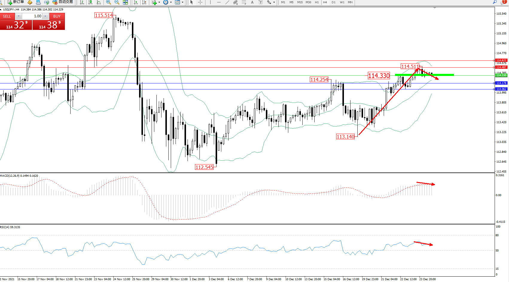 交易策略:114.330下方看跌,目标144.178、114.062