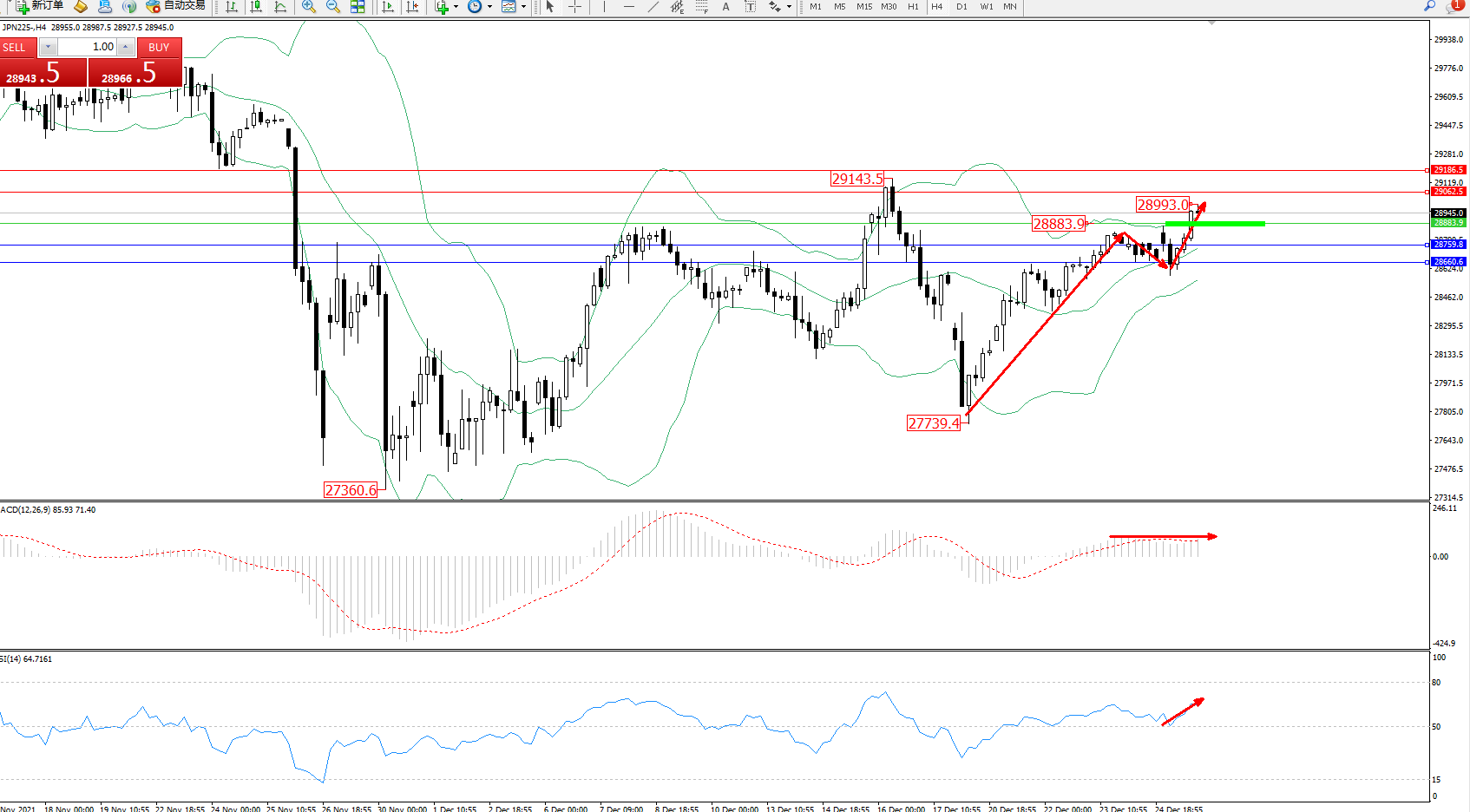 日经225指数12月27日(周一)收盘下跌102.87点,跌幅0.36%,报28695.50点。随着经济的改善,日本的长期国债收益率可能在2022年上升(至少会略微上升)。今年日本的经济开局相当不错。机构调查预计日本经济增长2.9%,与美国增长3.9%的预期相差不远。日本0.5%的核心CPI是自2020年2月大流行爆发前以来的最高水平。政府计划增加40年期国债的销售,并削减票据和2年期国债的销售。鉴于明年可能不得不支付更多利息,官员们目前正在锁定较低的长期借贷成本。