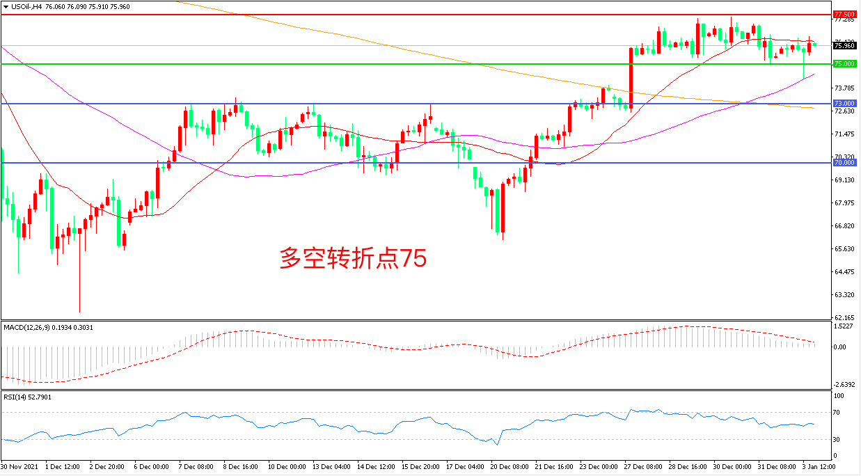 交易策略:在75.00之上看涨,目标77.50 80.00