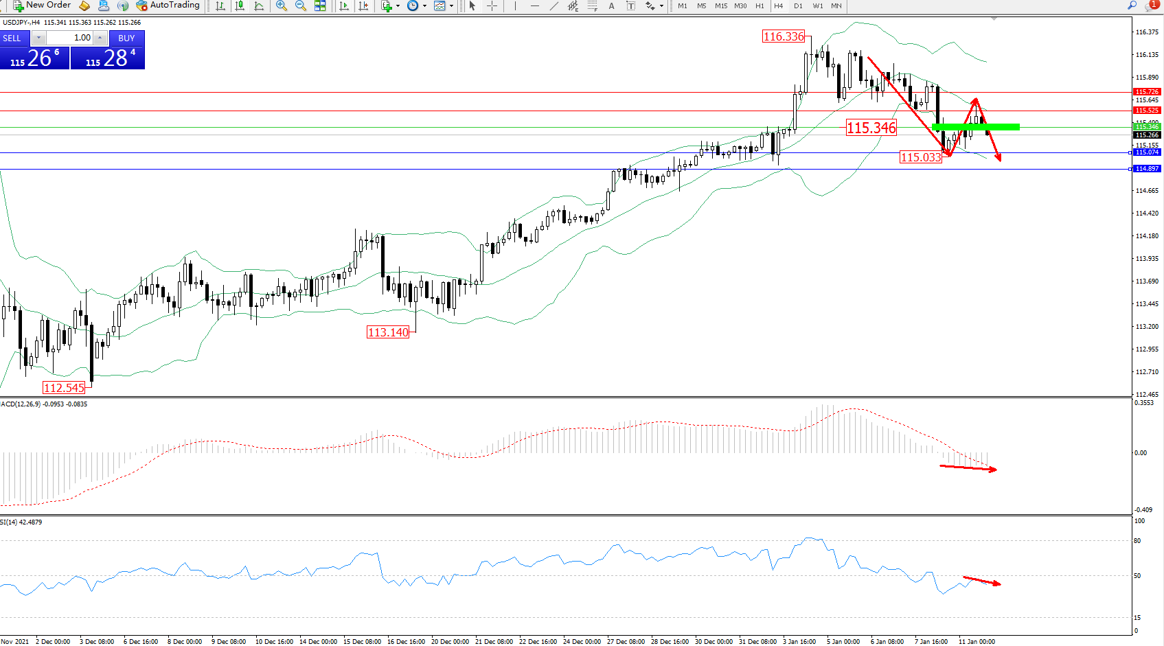 交易策略:115.346下方看跌,目标115.074、114.897