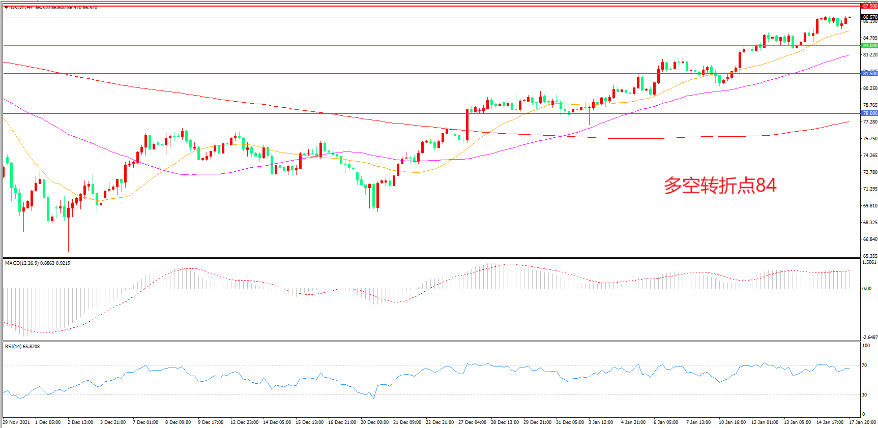 交易策略:在84.00之上看涨,目标87.50 90.00