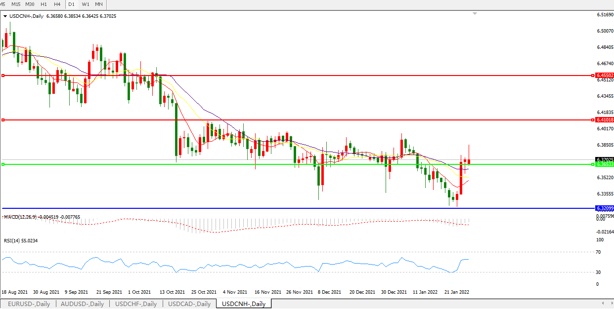 备选策略:在6.3650之下,看跌,目标价位为6.3200,然后为6.2800。
