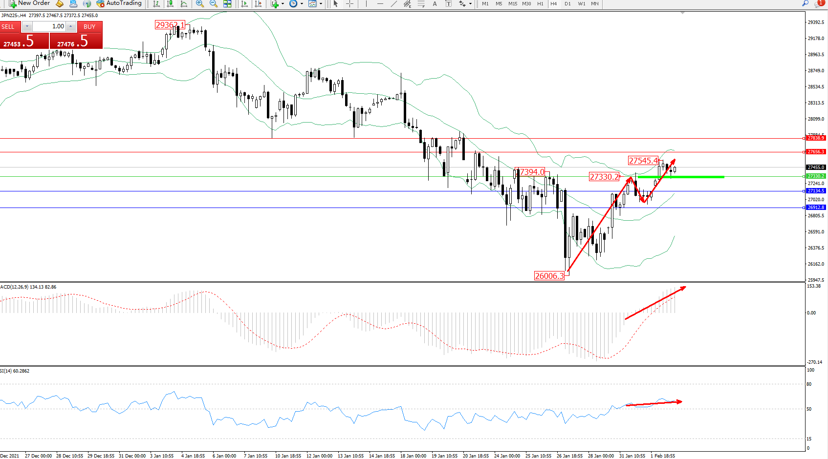 技术点评:低位多头动力延续布林带指标通道中上轨区间持续震荡上扬,高位抵达27545附近节点后开始整理,短期多头动力有继续震荡上扬态势,布林带指标呈收口不断上移中,MACD指标处于多头区域维持震荡不断攀升,RS指标维持50均衡线上方不断徘徊中;