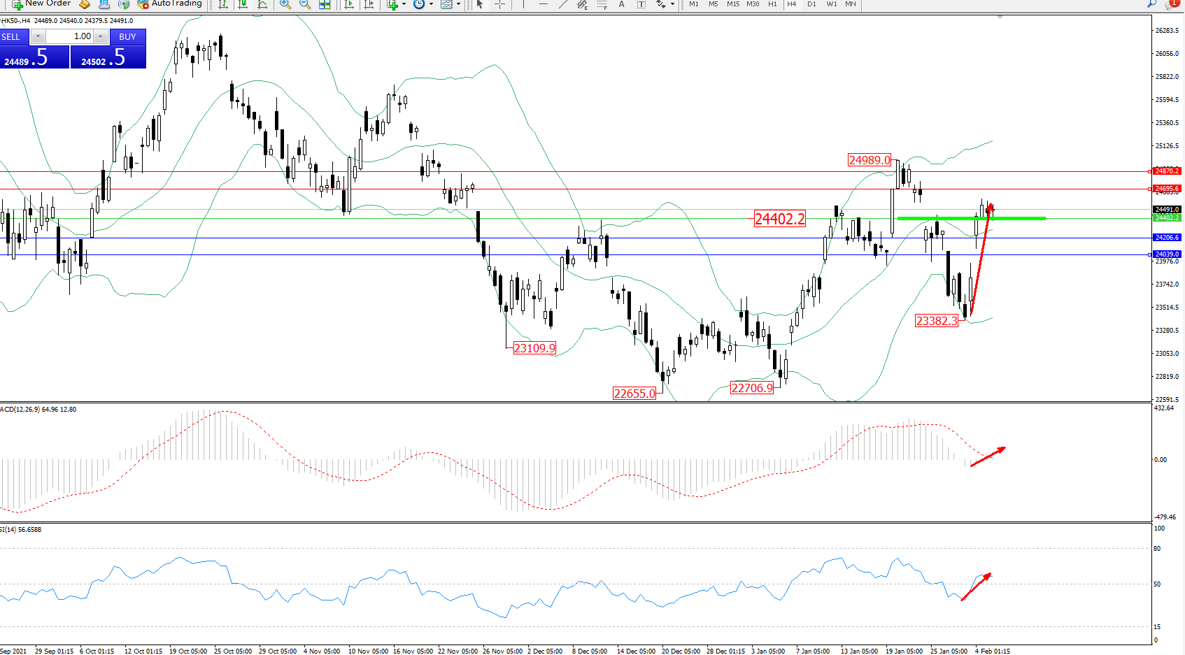 香港恒生指数2月7日(周一)收盘上涨6.26点,涨幅0.03%,报24579.55点;港股主要指数收盘涨跌不一,科技股表现较弱,致恒生科技指数跌0.93%,南下资金净流入26.2亿港元,大市成交额为1223亿港元。大型科技股多数走低,阿里巴巴跌4.49%,小米跌1.2%,腾讯、美团小幅下跌,京东涨2.6%表现较佳;香港新冠疫情升温,消息指今日新冠病毒确诊宗数增逾600宗,创疫情以来单日新高。食物及卫生局局长陈肇始于电台节目表示,香港疫情极度严峻,确诊数字倍数上升,甚至开始几何级升幅,预告港府积极考虑收紧社交距离措施,明天(8日)行政会议后将公布新一轮社交距离措施,方向主要是减低人流,亦会加强检测能力和个案追踪工作。