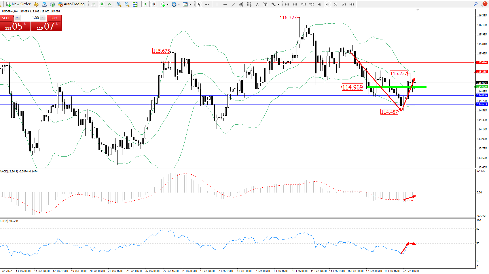 美元兑日圆维持115.054附近震荡,随着围绕乌克兰紧张局势加剧的消息传出,俄罗斯正式承认乌克兰分离势力自封的共和国,普京下令俄军越境“维和”,日元兑所有其他G10货币走强。而且交易员预计美联储3月份加息50基点的机率较小,若是俄乌局势仍处于紧张状态中,则在避险推动下美日有望继续向下更深的水位探去,日元继续获得投资者青睐。