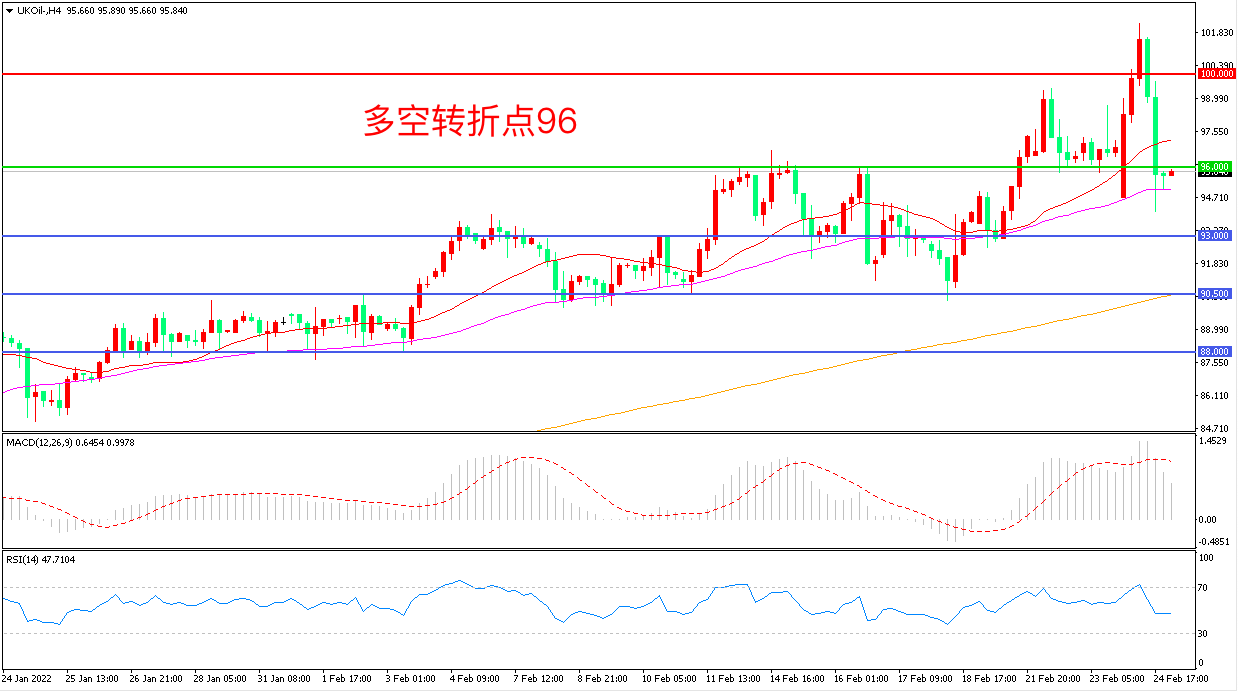 周四(2月24日),受俄乌开战事件影响,油价一度飙涨近3%,但由于美国总统拜登已强调美国不会派兵到乌克兰作战,战争结束可能较快,布伦特原油冲高回落,收报95.94美元/桶。俄乌战争为市场增加了新的波动性和不确定性,虽然在基本面上还有很多的看涨情绪,但伊核协议也可能利空油价,多重因素影响下,油价可能延续震荡上行形态。
