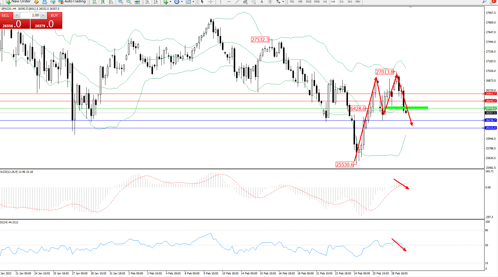 日经225指数3月1日(周二)收盘上涨322.68点,涨幅1.22%,报26849.50点。日本经济产业大臣萩生田光一:将评估有关SWIFT(银行结算系统)措施对能源供应的影响。将与美国、欧洲合作,确保能源供应。将与国际能源署(IEA)和其他机构在石油储备方面密切合作。大公司有网络安全措施,但对分包商感到担忧。日本内阁官房长官松野博一:对俄罗斯央行的制裁将于今日生效。日本外交部称:日本将对俄罗斯总统普京、俄罗斯外长拉夫罗夫、俄罗斯国防部长绍伊古和49家俄罗斯公司和组织实施制裁。