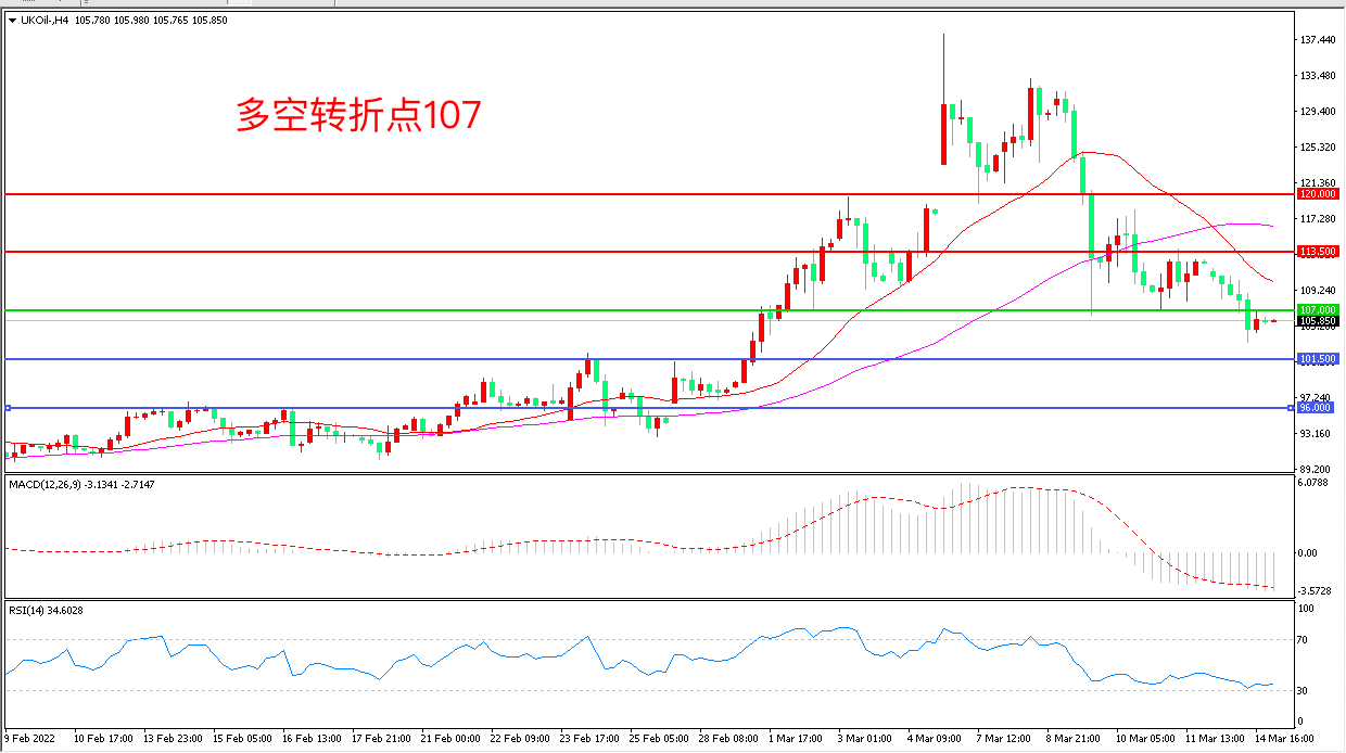 周一(3月14日),俄乌第四轮谈判开始,俄乌双方均积极表达了各自的立场,和平曙光的出现对油价形成打压,布伦特原油大幅下挫,收报105.85美元/桶。考虑到政治博弈的不确定性,投资者仍需对战争威胁保持警惕,伊核谈判暂停的情况下,重点关注后续西方国家对俄罗斯能源的制裁情况。