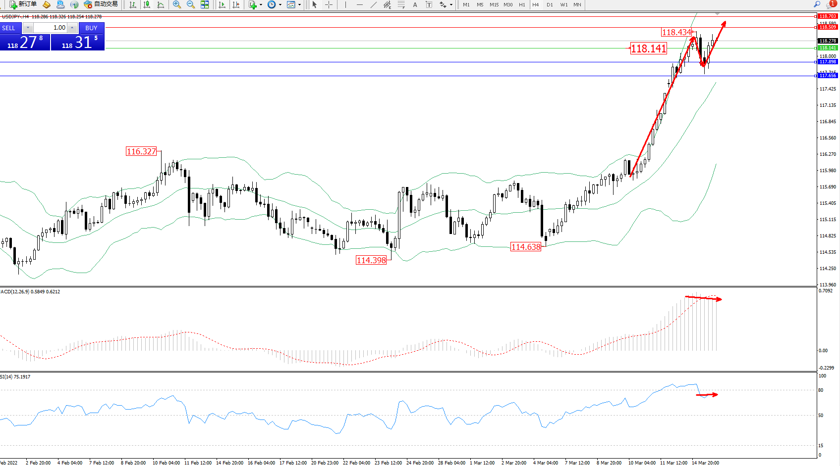 交易策略:118.141上方看涨,目标118.509、118.703