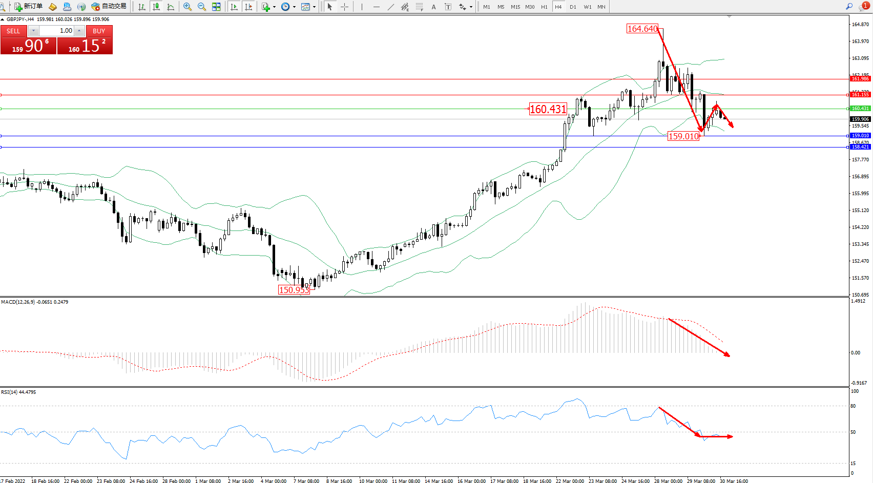 英镑兑日圆维持159.906附近震荡,俄乌和谈取得突破的报道导致美元兑一篮子货币下跌。日本央行承诺进行无限量购债企图压低10年期公债收益率。英国央行总裁贝利表示已经看到经济放缓的证据,预计这将压制英国国内的通胀,其并对进一步加息的必要性措辞有所软化。