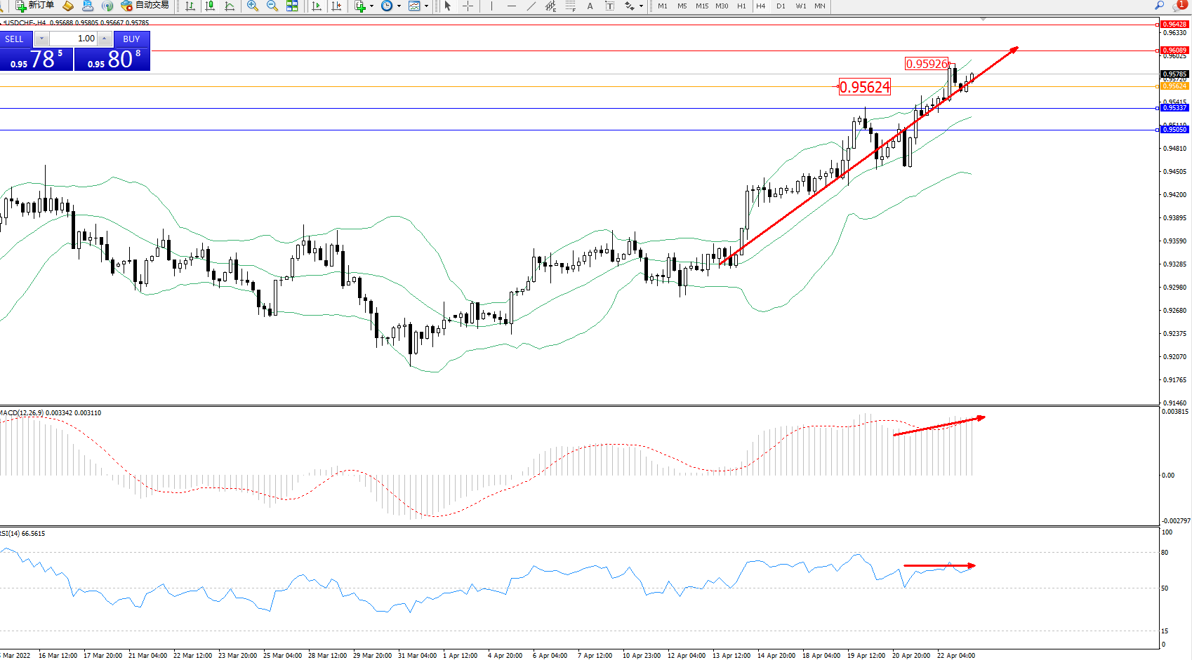美元兑瑞郎维持0.95788附近震荡,美元指数在前一交易日所及的两年高点附近持稳,降低瑞郎对于持有其他货币的买家的吸引力。在俄罗斯入侵乌克兰进入第三个月之际,乌克兰将在美国国务卿布林肯和国防部长奥斯汀预计于周日对基辅进行的访问中,要求美国提供更强大的武器。投资者仍需留意逢低买盘的支撑情况。