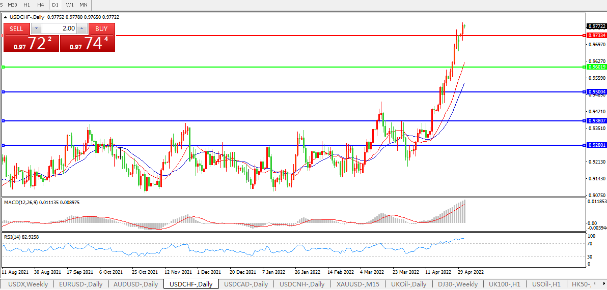 交易策略:0.9600上方看涨,目标0.9730,0.9900