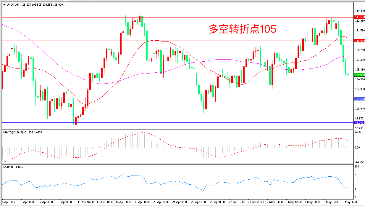 周一(5月9日),因担忧欧美央行持续收紧政策,全球经济衰退的担忧升温,风险资产遭遇惨烈抛售,布伦特原油大幅下挫,收报102.48美元/桶。目前为了控制通胀压力,欧美国家正在从市场中撤回流动性,宏观阴云笼罩市场,这已经成为市场最大的风险点,在市场情绪未稳定之前,油价仍有再度下行可能。
