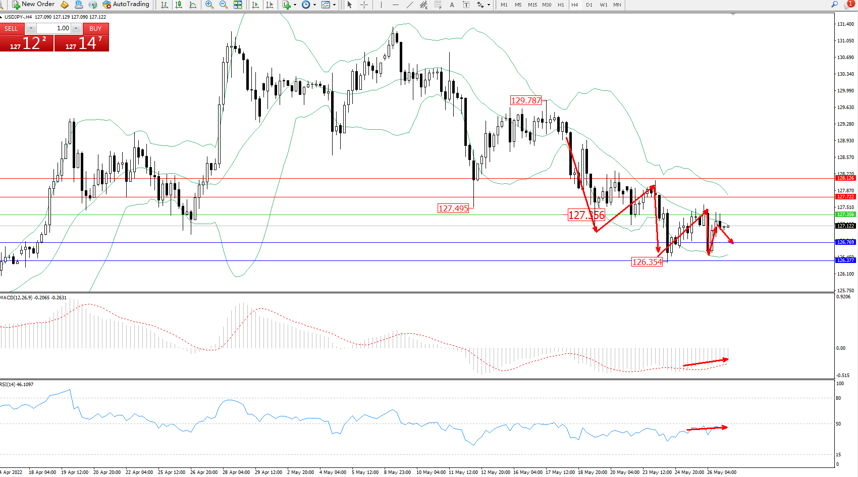 技术点评:空头动力延续布林带指标通道中下轨区间持续震荡下行,低位抵达126.354附近节点后开始震荡平移,短期空头动力有继续向下移动态势,布林带指标呈缓慢张口走势下行后开始收口,MACD指标处于空头区域低位维持弱势整理缓慢上移,RSI指标处于50均衡线下侧维持窄幅整理;