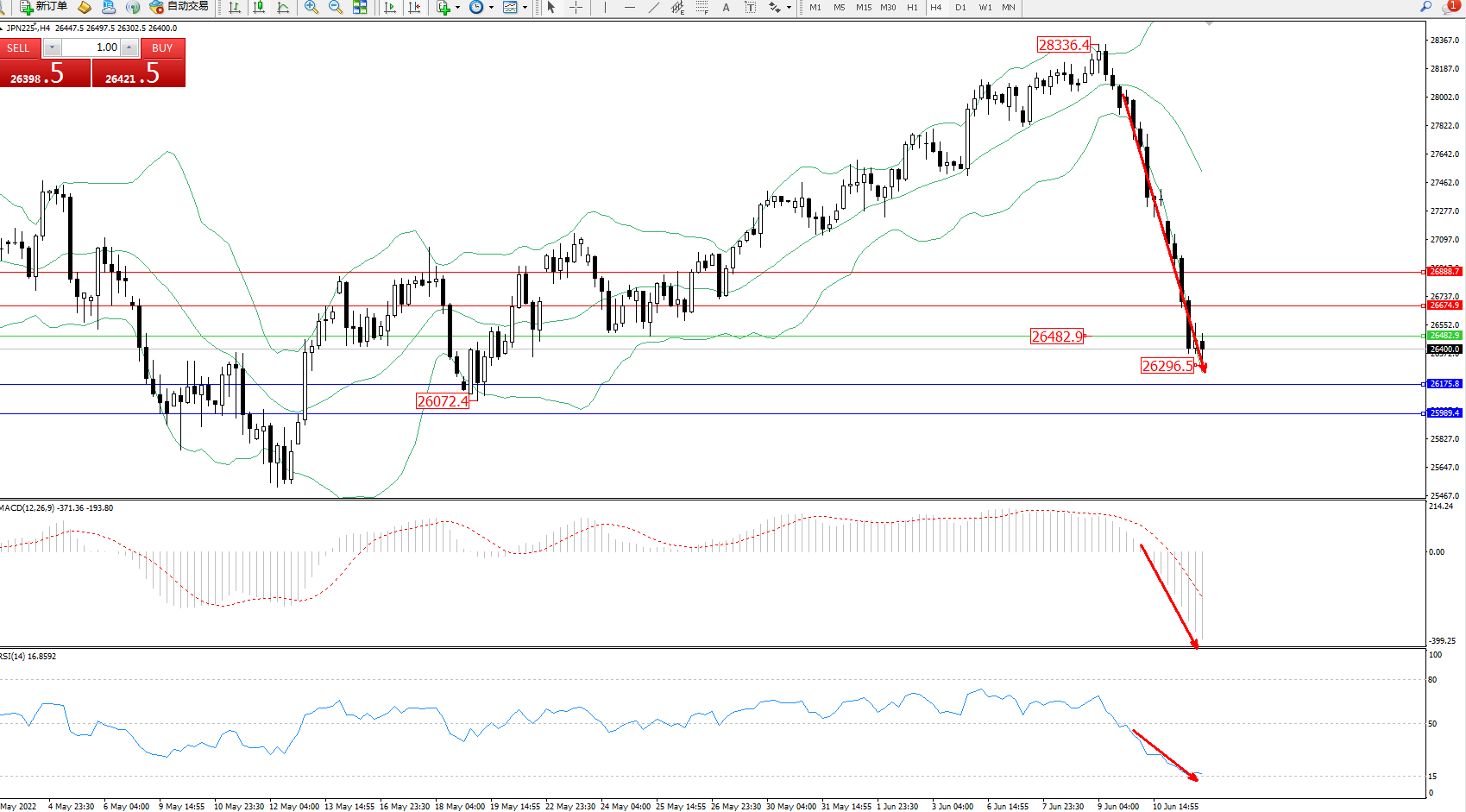 日经225指数6月13日(周一)收盘下跌810.29点,跌幅2.91%,报27014.00点。日本央行行长黑田东彦:日本央行需要继续实施宽松货币政策。需要坚定地支持日本经济复苏。