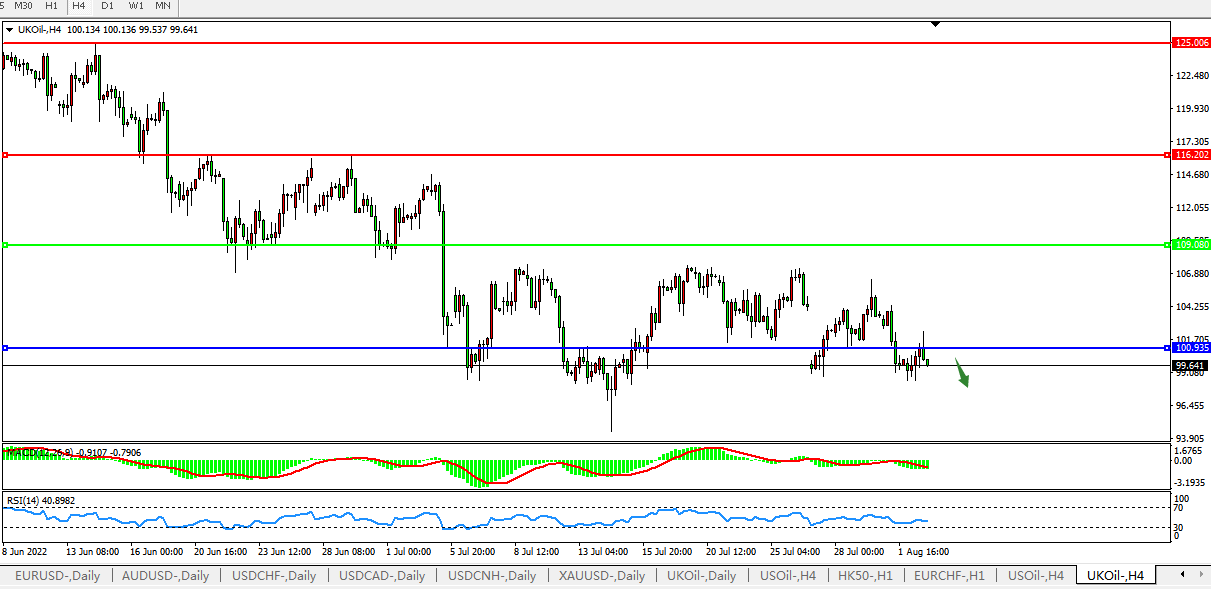 4小时图看:短线价格持续弱势,反弹难有建功,中期图形结构持续偏弱,且趋势线破败, MACD量能柱0轴下小幅放量,RSI小幅走弱,短期油价继续下行概率较大。