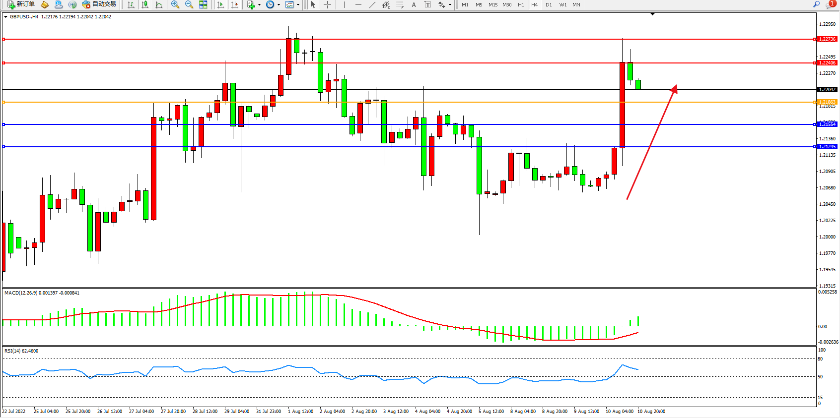 英镑兑美元维持1.22042附近震荡,英镑兑美元在短期内有再次跌破1.20的风险。英国的通胀将达到“惊人的13%”的峰值。英国央行的经济学家预计,从今年第四季度开始,英国经济将陷入长达四个季度的衰退。