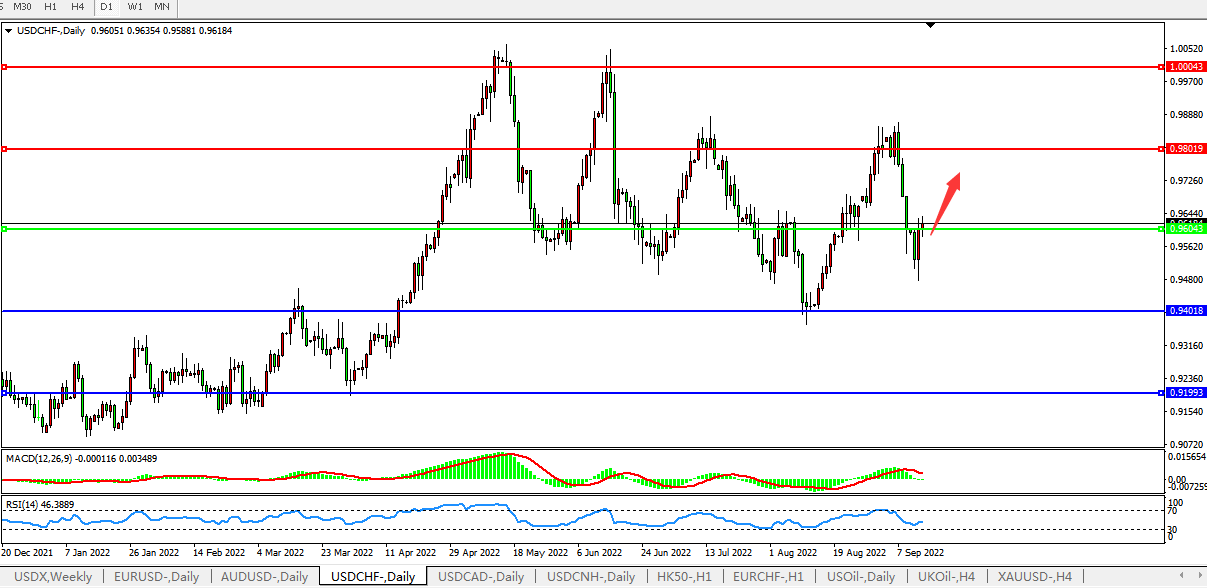 交易策略:0.9600上方看涨,目标0.9800,1.0000