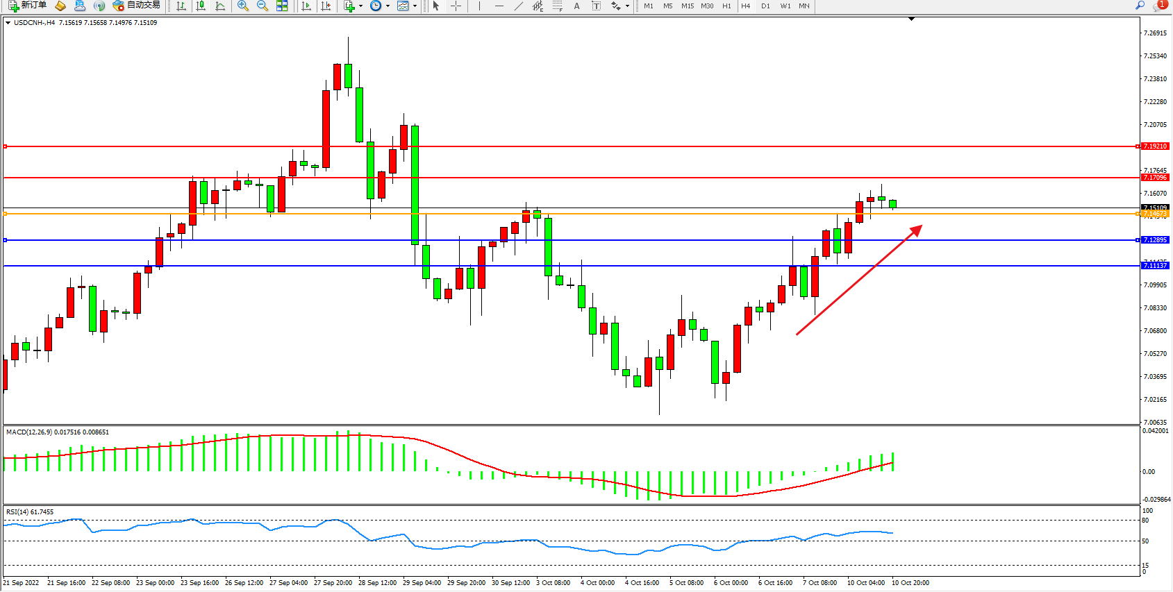 人民币:多头震荡上移 USDCNH  HKDCNH