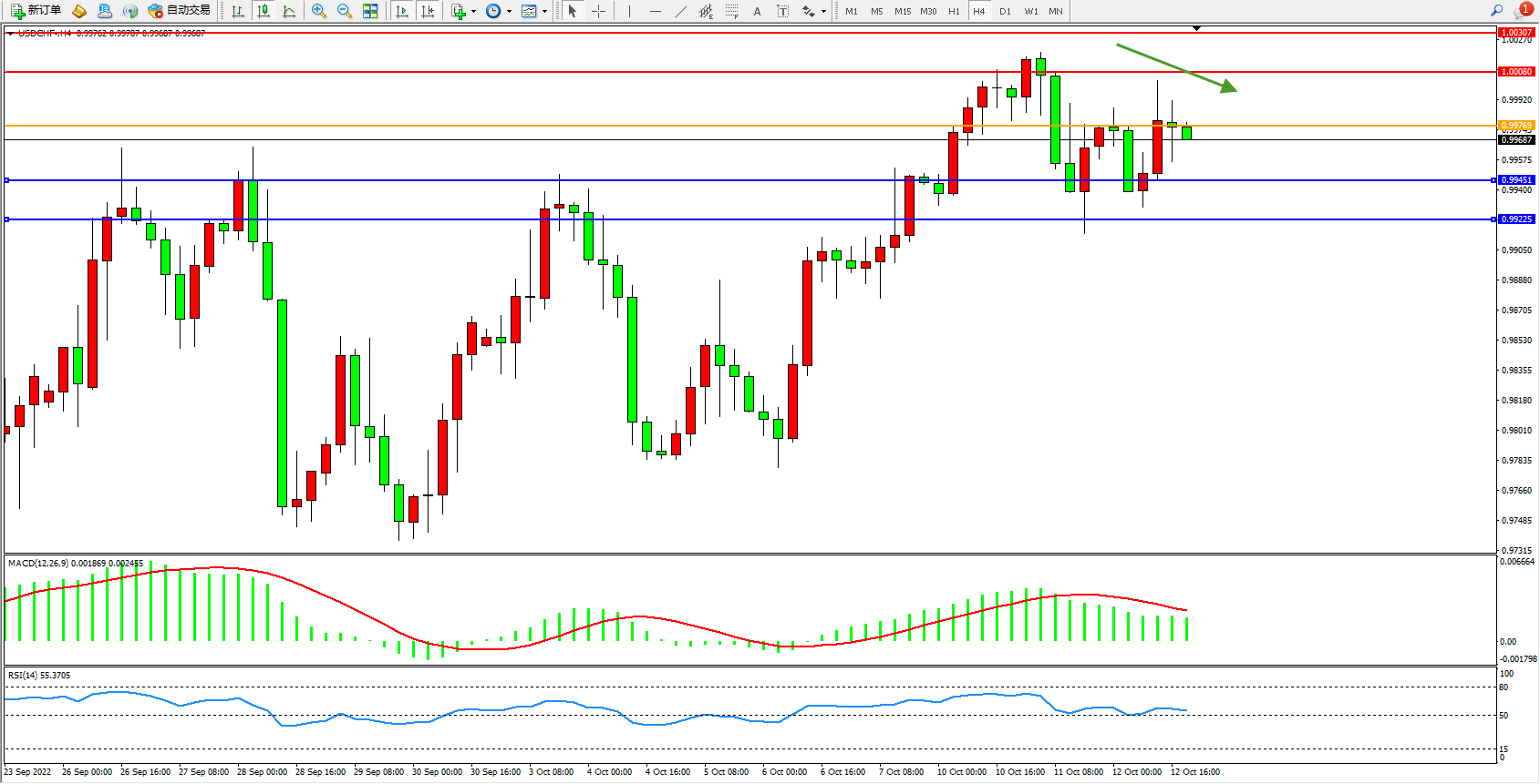 美元瑞郎USDCHF——4小时K线图显示: