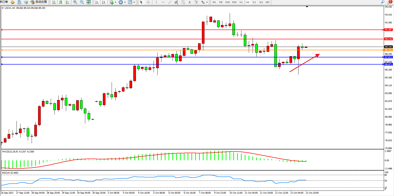 原油USOil——4小时K线图显示: