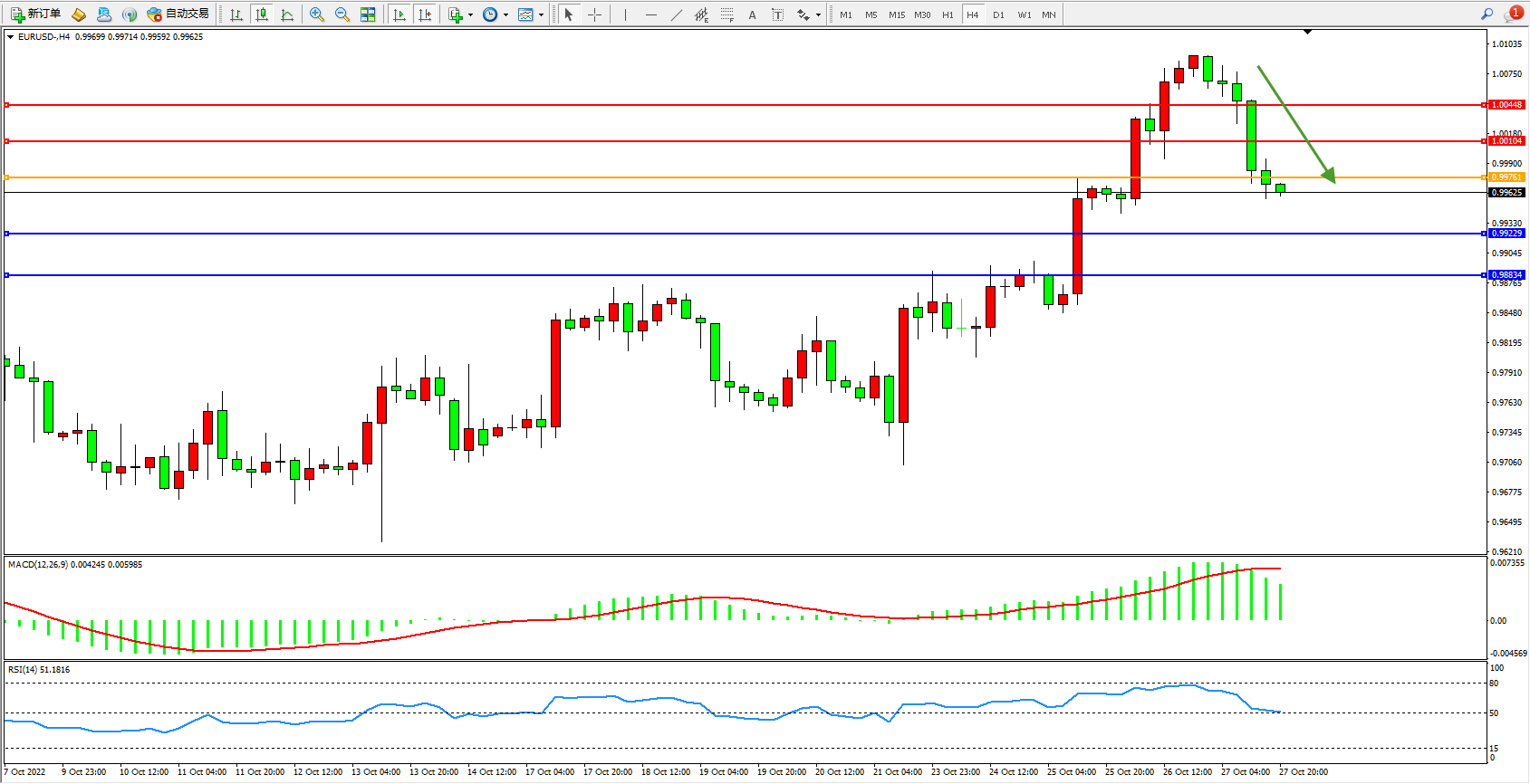 支撑:0.99229、0.98834