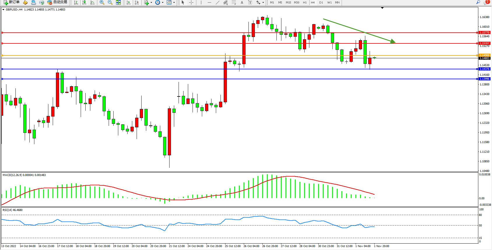 交易策略:1.14900下方看跌,目标1.14376、1.13996