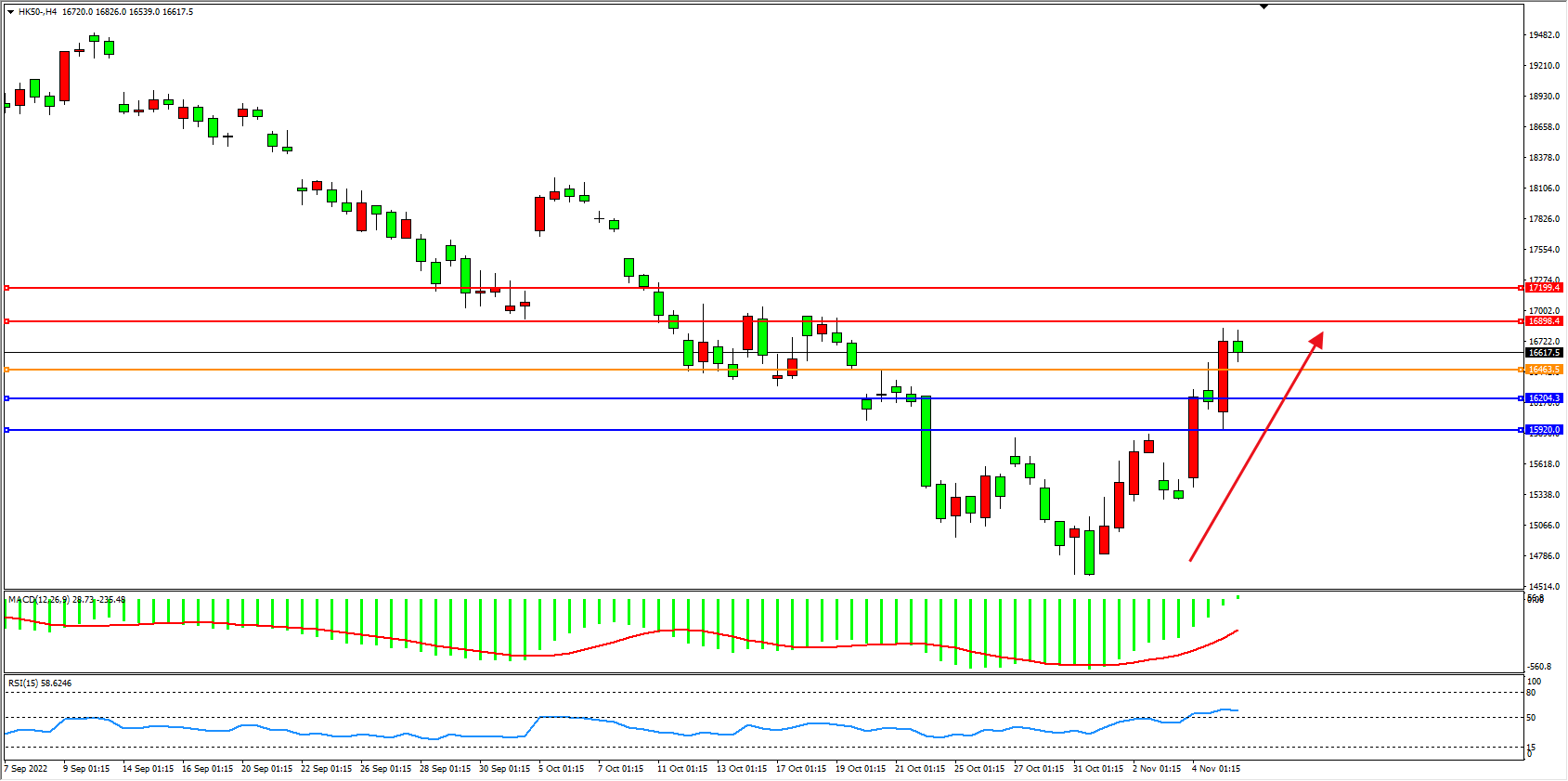 香港恒生指数11月7日(周一)收盘上涨434.77点,涨幅2.69%,报16595.91点;港股延续上周强势反弹行情,恒生科技指数一马当先,盘中一度涨近6%,收涨4.06%,恒指、国指分别涨2.69%和2.8%,三者均创近期反弹新高。大型科技股依旧引领大市走高,腾讯、美团皆走俏,阿里巴巴小幅下跌;政策利好频出,软件类股大涨,上周五发布的数据,在10月24日至30日当周,衡量香港中古屋价格的中原城市领先指数环比下跌2%,创2016年3月以来最大跌幅,跌至2017年12月以来最低水平。