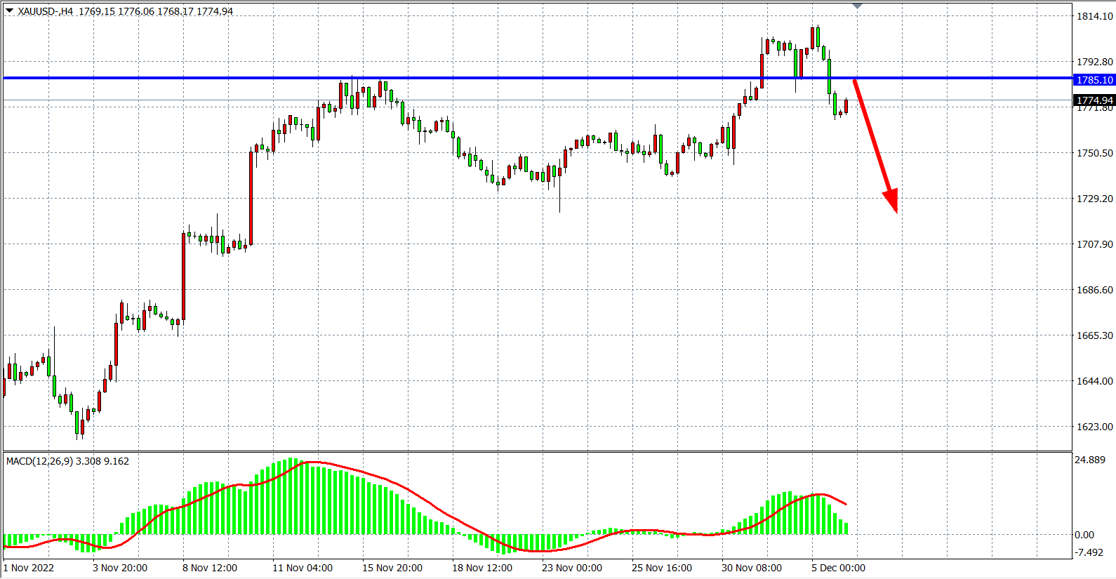 交易策略:在1785.00 之下看跌,目标1770.00 1755.00