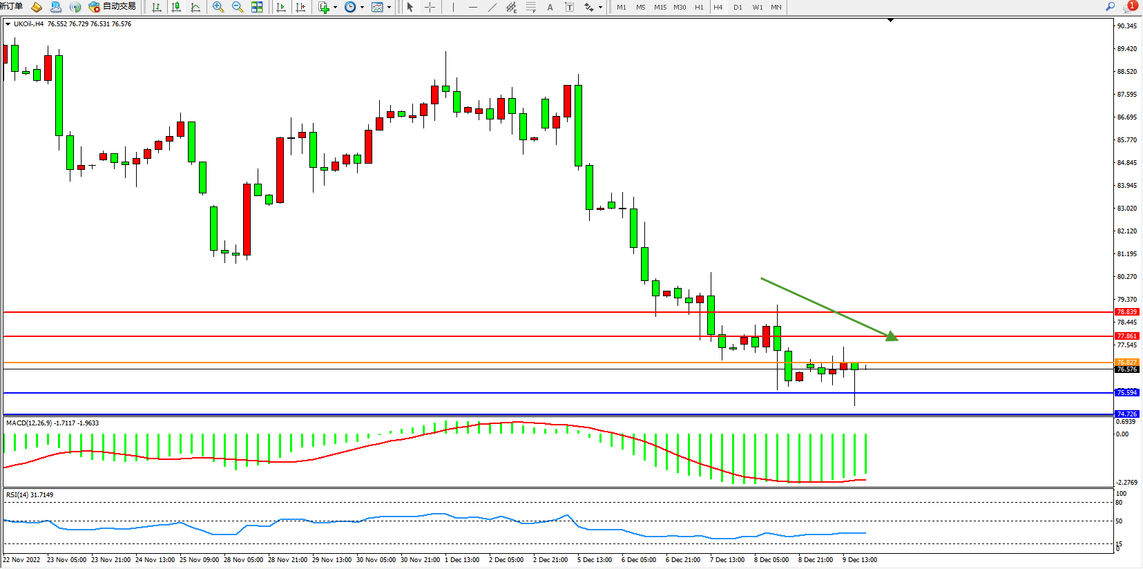 布油维持76.576附近震荡,欧盟俄油禁运和俄油价格上限生效,以及OPEC+延续10月份的减产计划暂时没有影响市场供应。而美国原油库存下降,成品油库存却连增,引发了需求担忧,利空油价。