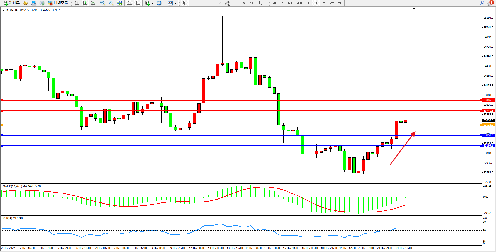 道琼斯指数12月21日(周三)收盘上涨526.74点,涨幅1.60%,报33376.48点;美国11月成屋销售总数年化:根据全美房地产经纪人协会的数据,11月份成屋销售连续第10个月下滑。美国四个主要地区都出现了环比和同比下降。