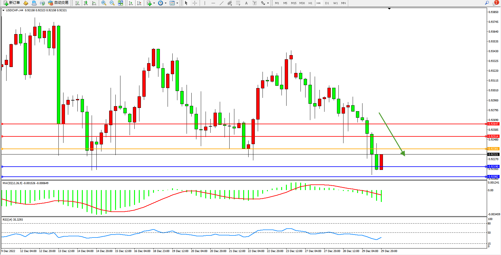 美元兑瑞郎维持0.92321附近震荡,市场参与者将密切关注主要央行行长的货币政策立场。美元指数和收益率的走势也将受到市场关注。除了地缘局势和通货膨胀担忧外,市场参与者还将把全球增长放缓的包袱带入了2023年。