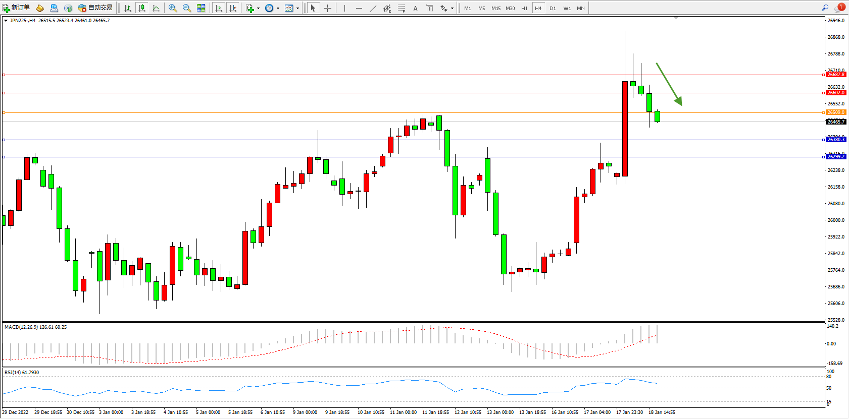日经225指数1月18日(周三)收盘上涨631.82点,涨幅2.42%,报26770.50点。日本央行决定维持超低利率,包括10年期公债收益率的0.5%上限。市场此前预期央行将在通胀压力上升后逐步取消大规模刺激计划。