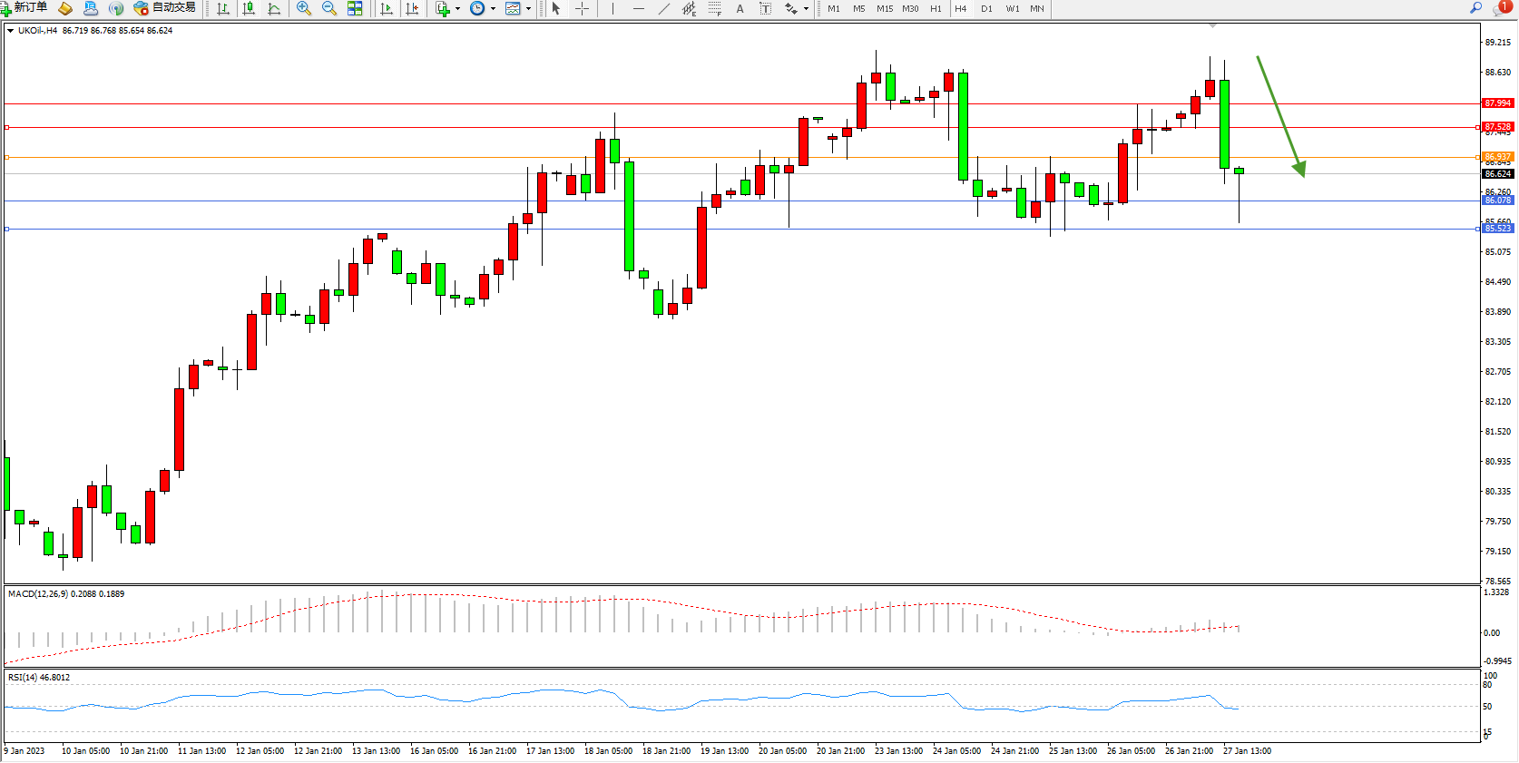 布油维持86.624附近震荡,欧盟对俄罗斯成品油的禁令将于2月5日生效,这将压低原油产量,并可能支撑油价上涨。市场预计,2023年俄罗斯的日产量将从去年的约1000万桶降至900万桶以下。