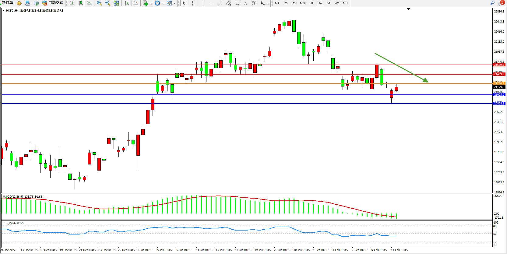 香港恒生指数2月13日(周一)收盘下跌26.0点,跌幅0.12%,报21164.42点;港股三大指数午后曾全部转涨,恒生科技指数涨0.29%,盘初一度跌2.2%,恒指小幅下跌0.12%。型科技股低开高走支撑大市回升,快手涨超3%,百度涨近2%,中证监严打非法跨境证券业务,已有香港本地券商率先叫停内地客户的户口。立法会金融服务界议员兼香港证券业协会主席李惟宏认为,相关监管新规暂未对整个业界有严重影响。