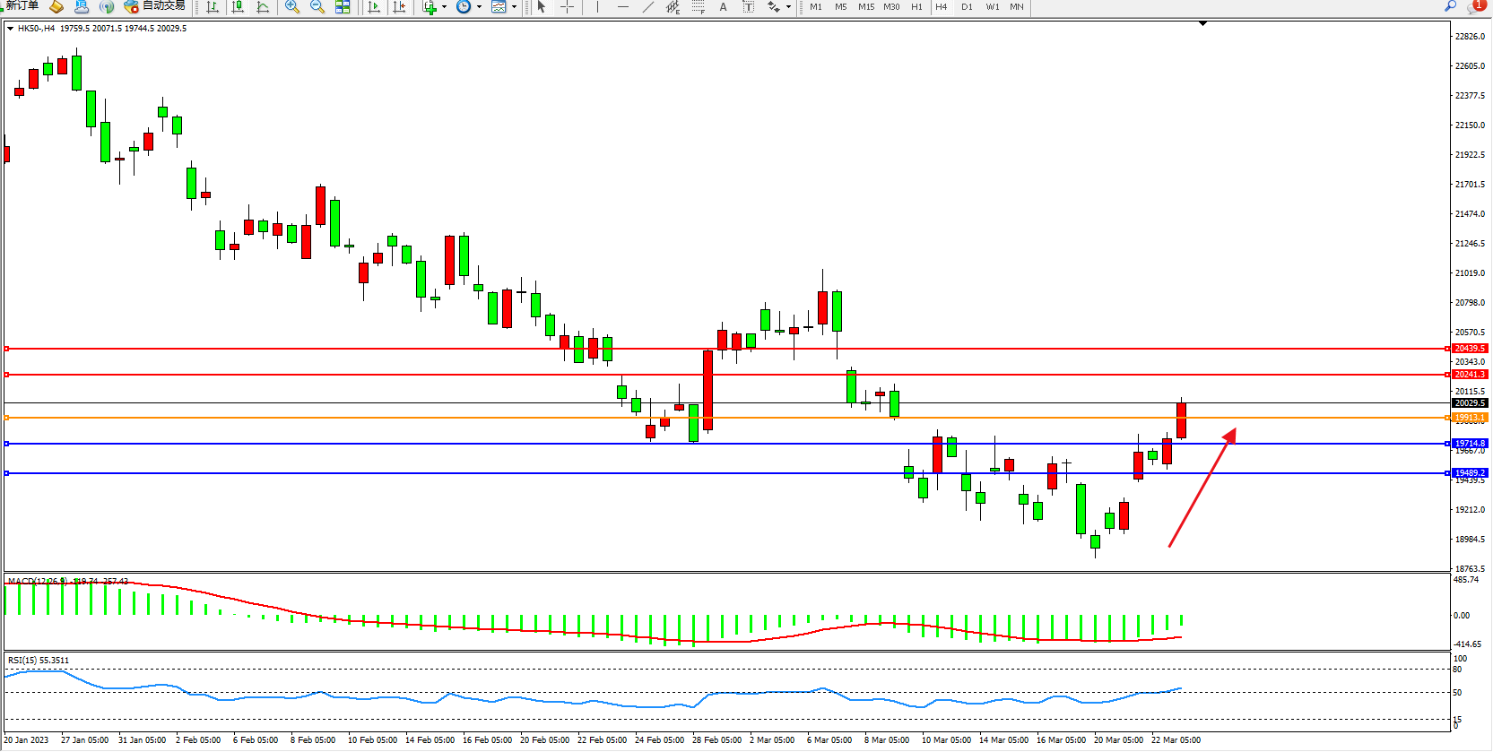 香港恒生指数3月23日(周四)收盘上涨458.21点,涨幅2.34%,报20049.64点;美银行危机影响渐退,港股三大指数全天呈单边上涨行情,市场情绪强烈恢复。恒生科技指数大涨4.74%,盘中收复4200点,恒指、国指分别涨2.34%和2.96%,恒指重回2万点大关。权重科技股齐涨助力大市上扬,美团、腾讯均大涨逾8%,南下资金净流入31.28亿港元,大市成交额为1363亿港元。