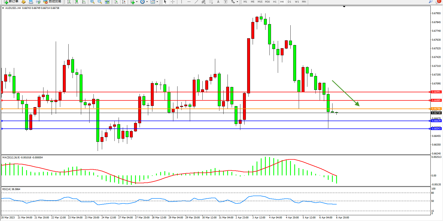 澳元兑美元维持0.66738附近震荡,在澳洲联储本周宣布暂停加息后,其可能在8月份之前都按兵不动,此后将把官方现金利率(OCR)提高到3.85%的峰值。澳新银行此前预计,4月和5月的加息将使该行的终端利率达到4.1%。美国CME耶稣受难日,旗下外汇期货合约提前于北京时间8日00:15结束交易。