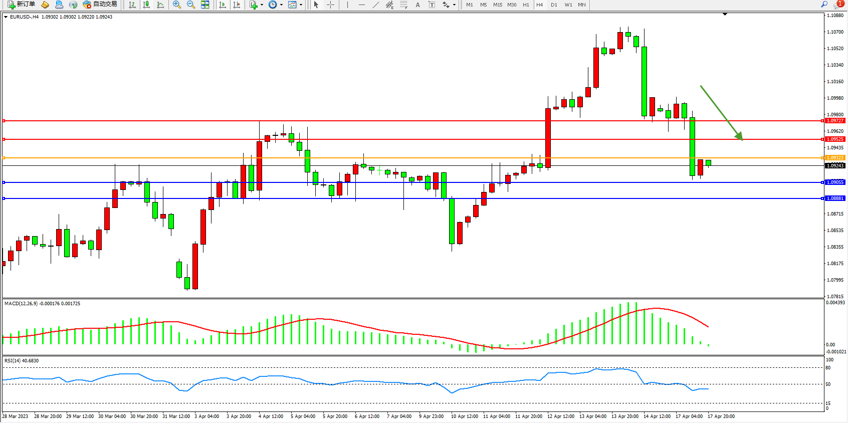 欧元兑美元维持1.09243附近震荡,在最近的银行业动荡之后,欧洲正面临着贷款紧缩的危险。目前最大的不确定性是让通胀回落的代价是多少,各国央行将试图将利率保持在尽可能低的水平。把经济带入衰退的风险肯定存在。