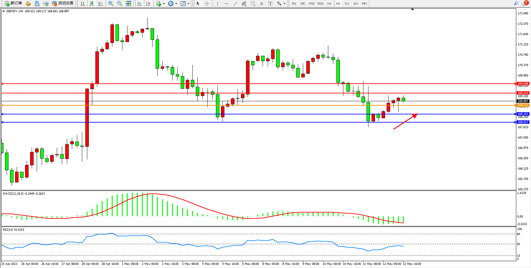 交易策略:168.711上方看涨,目标169.212 169.598