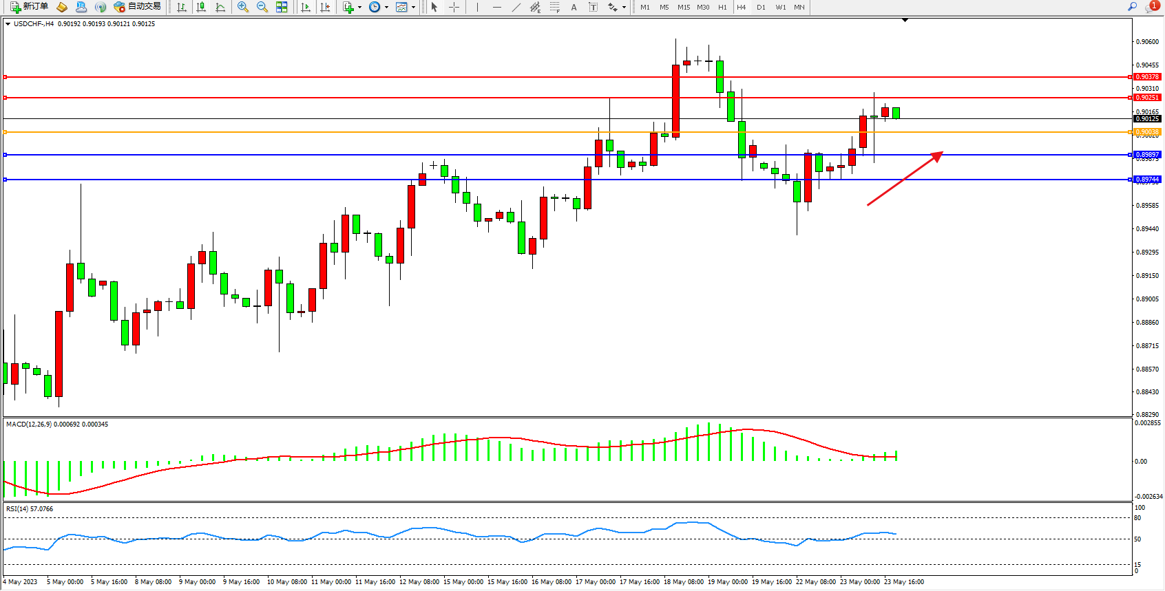 USDCHF:震荡上扬