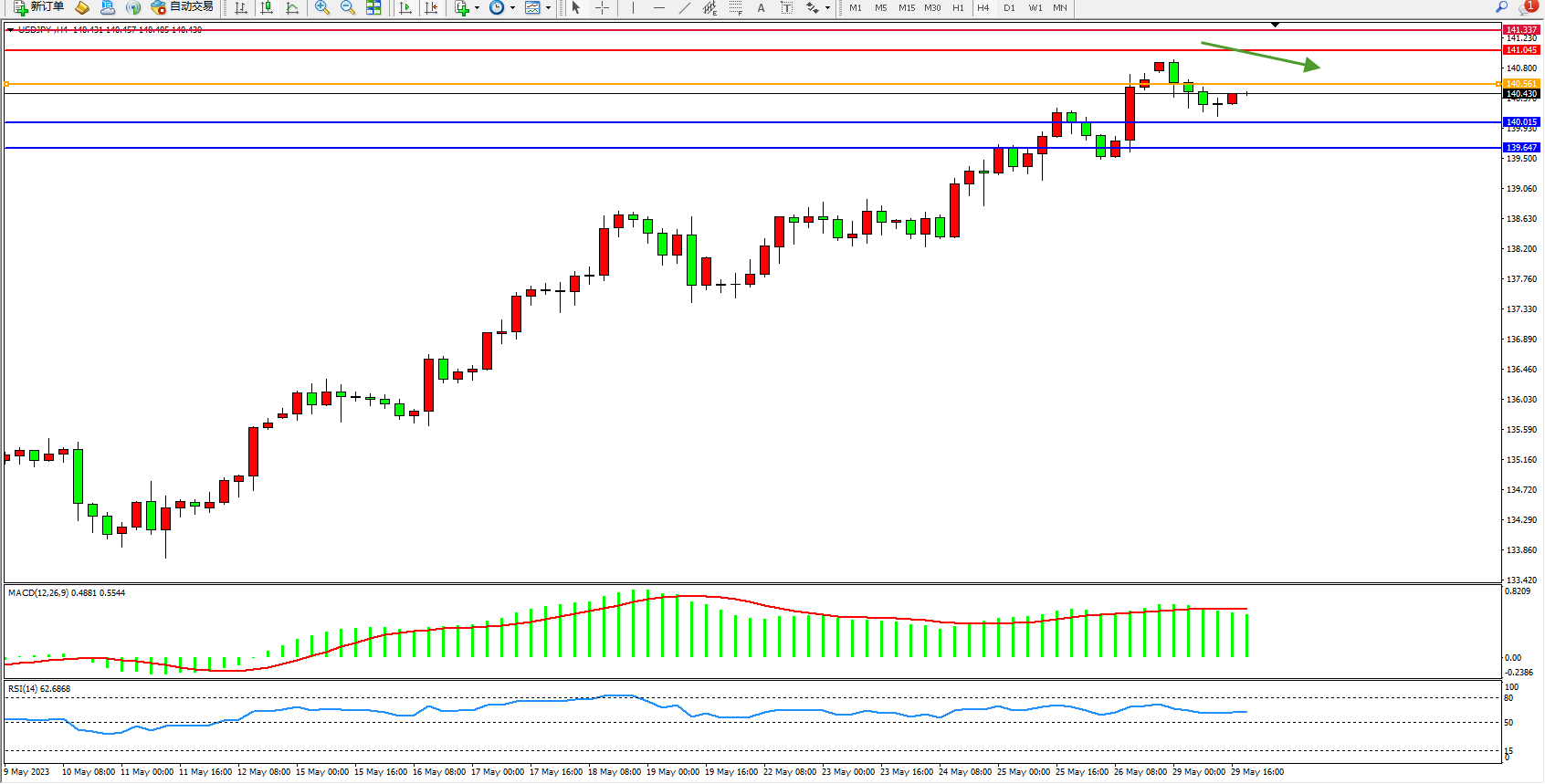 美元兑日圆维持140.430附近震荡,由于市场目前已经消化了美联储进一步加息的预期,美元兑日圆将很难延续最近的涨势。市场目前已经完全消化了美联储在6月或7月加息25个基点的预期,而降息预期的定价也已经下降,这消除了美联储和投资者之间的观点差距。