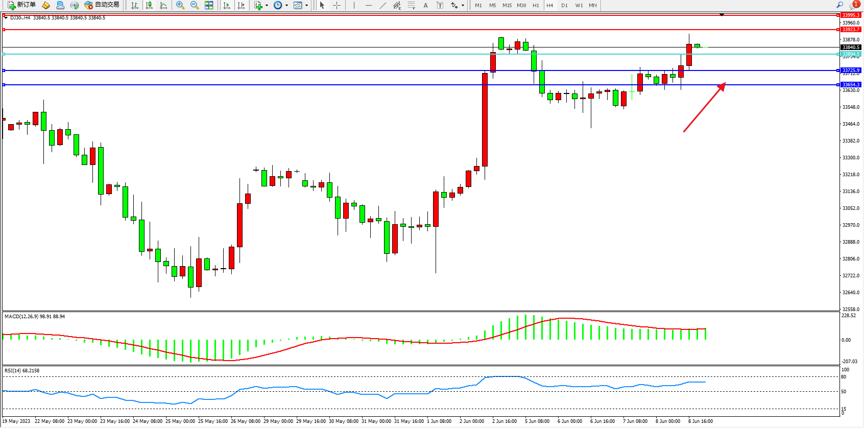 道琼斯指数6月8日(周四)收盘上涨168.26点,涨幅0.50%,报33833.28点;数据显示,截至6月3日当周,初请失业金人数增加2.8万人,至26.1万人,高于市场预期。而续领失业金人数,作为一个很好衡量失业救济的艰难程度的指标,则降至176万人。