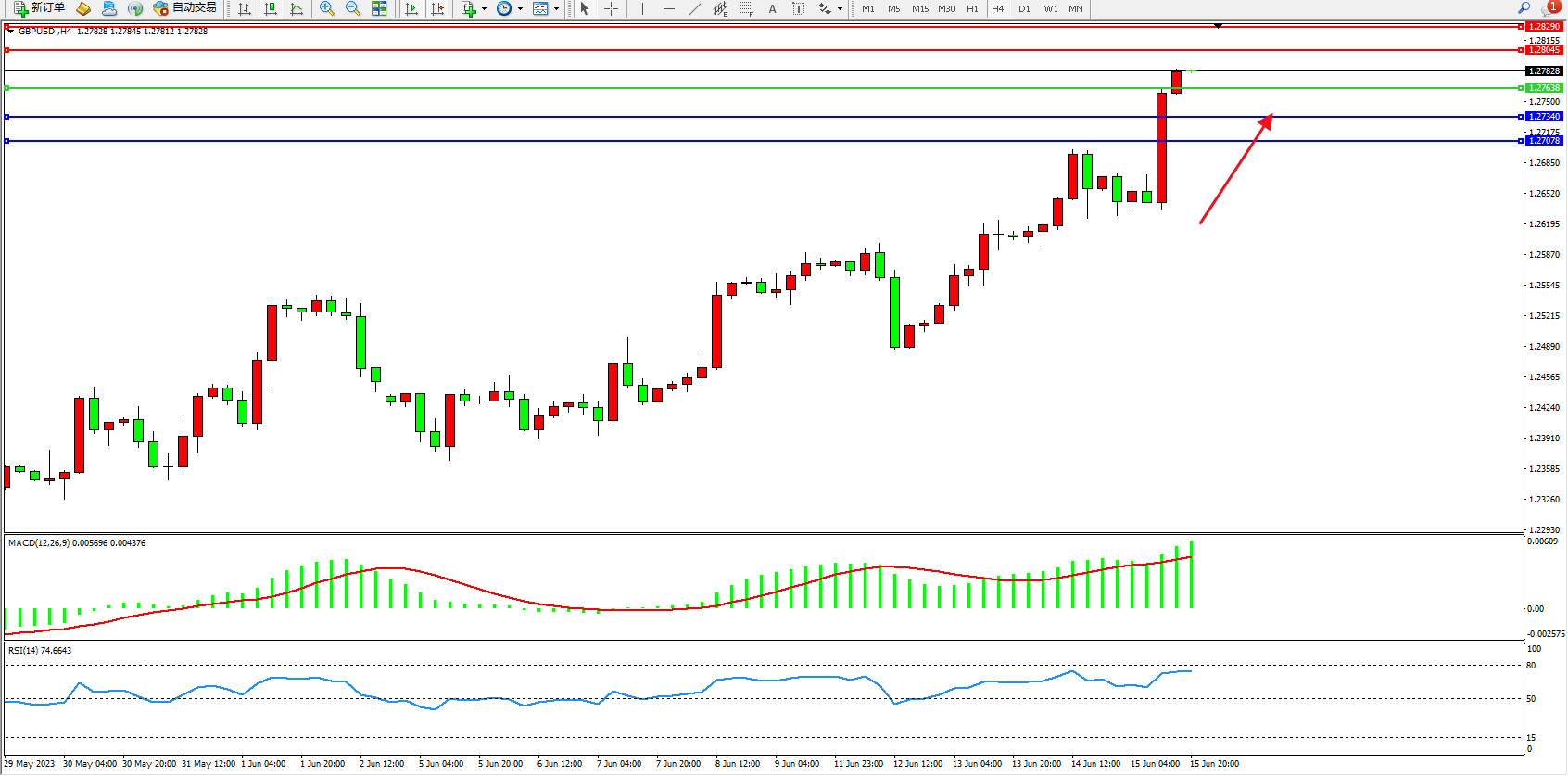 4小时图看:多头动力高位攀升,市场看涨情绪依旧,市场多头不断拉升中,MACD指标处于多头区域高位上移,RSI指标处于多头区域高位震荡;