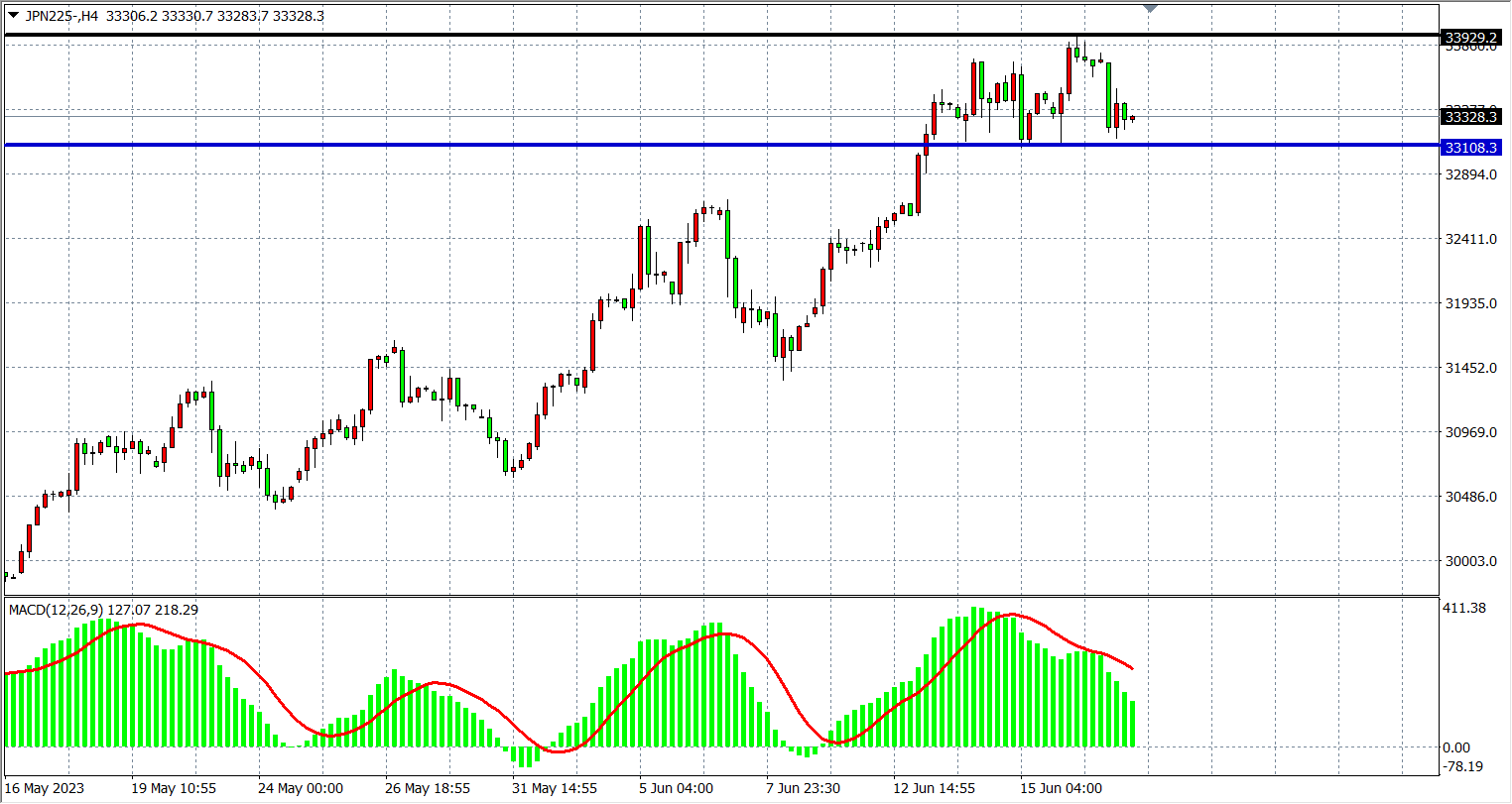 周一(6月19日)日经225指数收盘下跌318.08点,跌幅0.94%,报33388.00点。日本股市承受获利回吐以及看空情绪的压力,此前因预期众议院将提前解散,日股持续上涨,但首相岸田文雄否认解散议会并提前大选的消息,此前的乐观情绪遭到打击,投资者买入股票的兴趣降低。