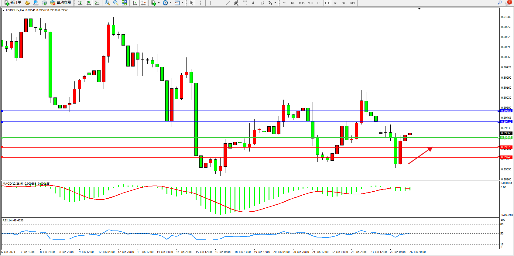 备选策略:0.89506下方看跌,目标0.89379  0.89248