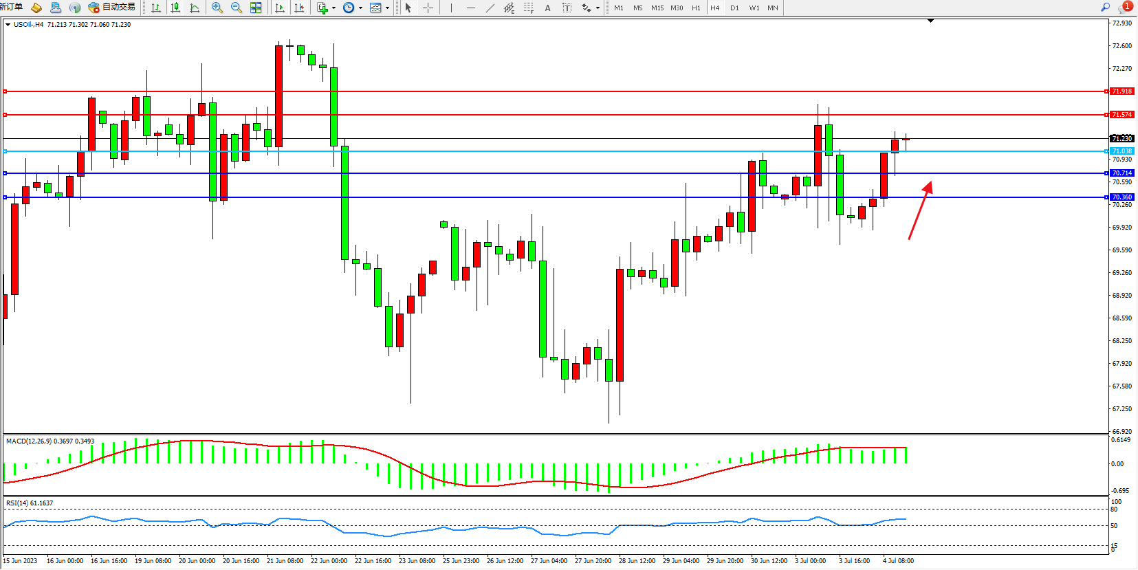 原油维持71.230附近震荡,目前的供需平衡表明,如果欧佩克+两大关键产油国实施这些减产措施,未来几个月原油市场将出现大规模供应短缺。