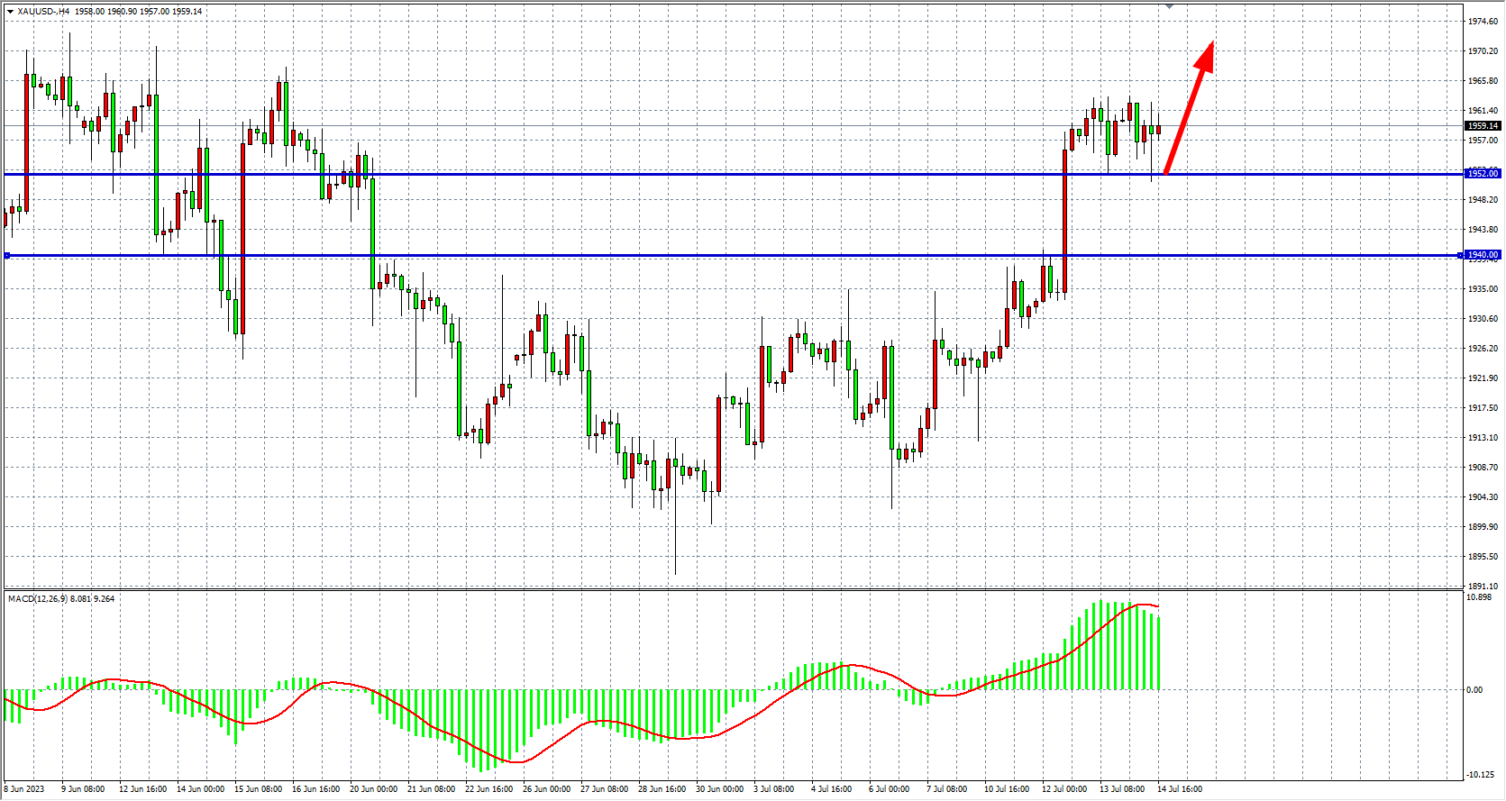 4小时图看,黄金在1950之上窄幅盘整,MACD量能维持零轴上,行情上行趋势明显,支撑继续关注1945-1952附近,上方阻力1970-1983。